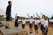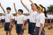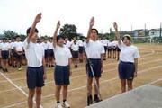 開会式の選手宣誓の様子。代表1名ではなく、3年体育委員全員がかわるがわる誓いの言葉を述べました。