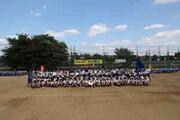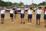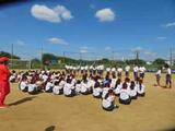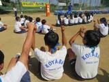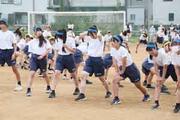 準備運動の様子。今年初めて団ごとに円陣を組んでの準備運動になりました。