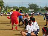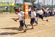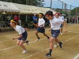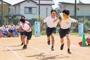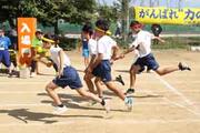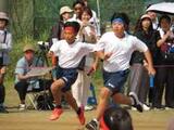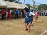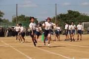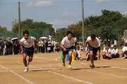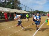 3学年リレーです。3年になると体も大きく、走る姿も迫力があります。3学年は赤団が1位となりました。