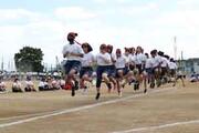 1学年リレーです。学年リレーは各クラス全員が参加します。基本は1人100mですが、ワープコースという80mのコースがあり、それをどのタイミングで誰が走るのかが作戦となります。1学年は赤団が1位となりました。