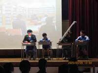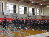 生徒会作成の思い出アルバムが上映され、3年生代表が後輩に向けた感謝の言葉を述べました。そして3年生の学年合唱で、三年生を送る会は終了しました。