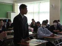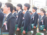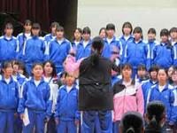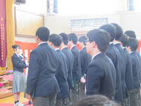 校長先生の話、生徒会長の話と続き、校歌を歌いました。