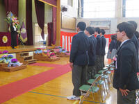 3月14日に卒業式が行われました。前日準備では1年生が学校全体の清掃と3年生の教室周りの装飾を担当、2年生が体育館の会場作りを担当しました。卒業する3年生のために、気持ちを込めて準備しました。