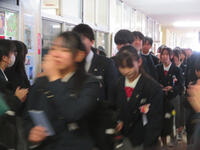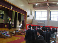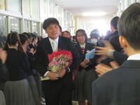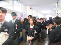 最後の学活の後、1,2年生のつくる花道を通って、3年生とお別れしました。厳粛な雰囲気の中に温かみのある、とてもよい卒業式でした。