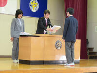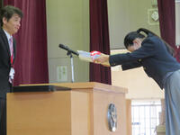 3月26日は終了式でした。これで令和6年度が修了となります。各学年の代表生徒が、修了証を受け取りました。