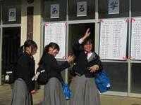 生徒たちは、新しいクラス発表の掲示に一喜一憂していました。