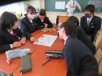 自己紹介の後は班を作り、サイコロトークです。すごろくに自分のコマを置き、サイコロの目で進むと、止まったマスのお題について語ります。こうして新しいクラス、新しい班員とコミュニケーションを取りました。
