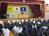 12月2日(火)に福祉教育の一環としてシッティングバレーボール体験がありました。こちらも事前学習でビデオを視聴し、パラリンピックについて調べたり、チーム分けを行いました。