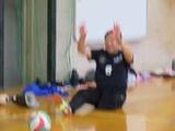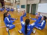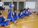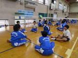 チーム毎に円陣パスで、座ったままのボールの扱い方を練習しました。