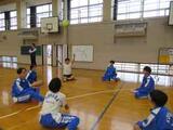 まず最初にお尻を床に付けたまま、準備体操に取組みました。