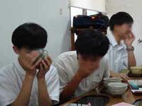 清掃場所が教室の生徒は普段通り机の下にもぐりましたが、机が無い廊下清掃の生徒などは屈んで頭を守りました。