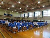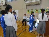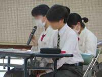 生徒会本部、委員長、部長が会場の前側で待機、校長先生のお話をいただきました。