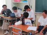 9月9日(火)に上級学校調べの、実際の調べ学習が始まりました。興味ある高校を一校決め(高校以外の上級学校でもかまいませんが、概ね皆、高校を選びます)、ワークシートにそって、新聞に載せる重要項目を調べていきます。PCで検索したり、高校のパンフレットを読んだりしながら、各校の基本的な情報を書き出していきました。