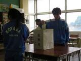 生徒たちは1度教室に戻り、順番に各学年の投票所に行き自分の一票を投じました。生徒会選挙は自分たちの代表を自分たちで考え決めるのと同時に、将来成人してからの選挙のシミュレーションという役割も含んでいます。