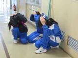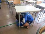 清掃場所に机がある場合はすぐに机の下にもぐり、机の無い場所にいた場合、蛍光灯の下を避けて頭をかばいながらしゃがみました。
